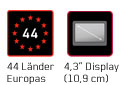 - 4,3'' (10,9 cm) Display mit reflektionsarmen Touchscreen im 16:9 Format