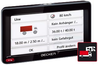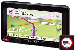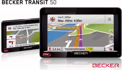 Mit dem BECKER TRANSIT 50 wird die Navigation dank der Berücksichtigung Ihrer individuellen Fahrzeugdaten sowie aller Truck- & Camperspezifischen Straßeninformationen auch für den Einsatz im LKW und Wohnmobil sicher und komfortabel.