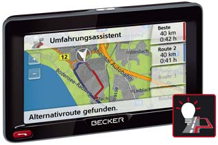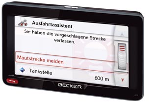 Umfahrungsassistent:Unerwartete Straßensperrungen oder -behinderungen in der Stadt, wie auch auf der Autobahn lassen sich mit Hilfe dieses Assistenten auf Knopfdruck umgehen. Ausfahrtassistent: Fahren Sie unerwartet von der Autobahn ab, so analysiert Becker SituationScan sofort mögliche Gründe dafür, beispielsweise werden Ihnen Tankstellen in der unmittelbaren Umgebung angezeigt.